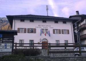 In copertina e qui sopra due suggestive immagini di Sauris; all’interno, il municipio e alcue fasi dei lavori.