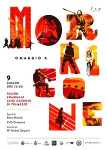 E “Omaggio a Morricone” è intitolato il concerto dedica, organizzato a un anno dalla scomparsa del maestro indiscusso delle colonne sonore, che si terrà domani 9 giugno, alle 20, al Teatro Candoni di Tolmezzo. Protagonista la Fvg Orchestra diretta da Andrea Gasperin, con ospite d’eccezione il soprano Elena Memoli. Il concerto è gratuito, ma per partecipare è necessario prenotarsi in uno di questi modi: a Palazzo Frisacco in via Renato Del Din 7 a Tolmezzo (eccetto oggi, martedì, 10-12.30 e 15.30-19), oppure scrivendo a candonifrisacco@gmail.com (0433.41247). Inoltre, la biglietteria del teatro sarà aperta domani dalle 18.30. Per ogni ulteriore informazione: www.fvgorchestra.it