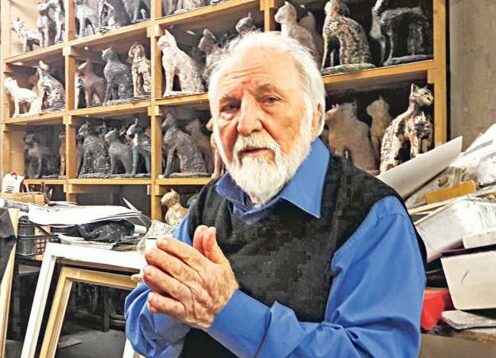 In copertina, Giorgio Celiberti durante l’incontro a Roma con il ministro Dario Franceschini; qui sopra, l’artista nel suo studio udinese.