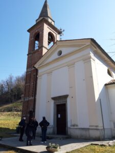In copertina, la piccola Chiesa di Vallemontana e all’interno la messa di ieri mattina con il successivo momento conviviale sul sagrato.