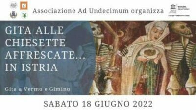 Per sabato 18 giugno è annunciata, invece, una “Gita alle chiesette affrescate… in Istria”. In particolare, saranno visitate le chiese di Santa Maria delle Lastre, a Vermo, e di Sant’Antonio, a Gimino. All’interno della prima c’è la famosissima “Danza macabra” che, assieme all’Arena di Pola e alla Basilica Eufrasiana, rappresenta una delle opere artistiche più conosciute nell’Istria croata.