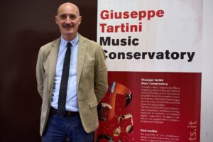 Maggio di musica al Conservatorio “Tartini” con l’Open Day, il tradizionale appuntamento di primavera nel quale le porte della storica istituzione triestina di Alta formazione musicale – fondata nel 1903, quindi al traguardo dei suoi 119 anni! – si aprono alla città, ai giovani e giovanissimi che stanno valutando di dedicarsi allo studio della musica, alle famiglie che li accompagnano ma anche, semplicemente, ai curiosi e agli appassionati, per uno sguardo alle aule nelle quali ci si cimenta per la prima volta, a tu per tu con uno strumento, ai luoghi dove la musica nasce e viene di giorno in giorno praticata dai più piccoli, da ragazze e ragazzi per i quali suonare o cantare diventerà uno stile di vita. Nel pomeriggio di venerdì (nella foto, Giovanni Aiello) sono stati tantissimi i giovani e le famiglie che hanno “bussato” alle porte del “Tartini”, per unirsi alle passeggiate musicali predisposte dai docenti e soprattutto dagli studenti del Conservatorio, che sono stati ciceroni attraverso i corridoi, le aule di studio, la scalinata di Palazzo Rittmeyer, la scintillante Aula magna e la spaziosa Sala Tartini, dove si sono svolti brevi concerti e performance affidati a musicisti di tanti dipartimenti musicali: dal jazz ai fiati, dai cameristi della musica d’insieme agli “innovatori” delle nuove tecnologie. L’occasione per avvicinarsi al mondo della musica nei luoghi in cui viene studiata, insegnata e praticata. Per incontrare i docenti e i giovani musicisti che ogni giorno studiano al Conservatorio; testando gli strumenti musicali, da quelli più familiari a quelli meno noti, per capire come “suonano”, sentire l‘effetto che fa averli fra le mani, decidere magari di iniziarne lo studio. Otto sessioni e passeggiate della durata di un’ora abbondante hanno permesso di esplorare a fondo il Conservatorio Tartini, per progettare la propria scelta. «L’offerta formativa del Conservatorio Tartini – ha ricordato il direttore Sandro Torlontano – comprende oltre 115 corsi di cui un’ottantina di livello universitario: vanno dalla didattica e perfezionamento strumentale alla direzione orchestrale e corale, dalla composizione al teatro musicale, dal jazz alle nuove tecnologie, ai corsi propedeutici. Il Conservatorio produce ogni anno oltre centocinquanta eventi di musica pubblica a Trieste e nella regione, molti dei quali nella propria sede per dare l’occasione ai giovani di esibirsi e fare esperienza». Inserito nel sistema universitario e della ricerca regionale, il “Tartini” ha accordi con scuole di musica pubbliche e private operanti nel territorio, collabora a livello internazionale con oltre sessanta università e istituzioni accademiche europee, promuovendo ogni anno un vasto piano di mobilità internazionale per studenti e insegnanti, che lo colloca al vertice italiano per numero di scambi.