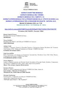 (g.l.) Il Club per l’Unesco di Udine oggi celebra diverse Giornate mondiali e internazionali: Marittima, Turismo, Habitat, preservazione dello stato di ozono, riduzione dei disastri naturali. Quest’ultima è quanto mai importante e attuale, vista l’alluvione che ha colpito pochi giorni fa le Marche, calamità atmosferica che ha più volte interessato anche il Friuli Venezia Giulia in modo più o meno grave, senza parlare degli eventi di straordinaria potenza degli anni Sessanta come il disastro del Vajont, con pesantissimi effetti anche sulle comunità friulane di Erto e Casso, oltre che sulla veneta Longarone spazzata via dalle acque sprigionate dalla grande diga (quasi duemila vittime), e l’alluvione di Latisana da parte del Tagliamento esondato.