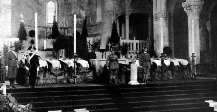 Il 28 ottobre 1921 Maria Bergamas, madre di un fante italiano disperso sul fronte della prima guerra mondiale, sceglie tra undici bare con le salme di soldati non identificati quella del Milite Ignoto, in una cerimonia che si tiene all’interno della Basilica di Aquileia. Il feretro, prelevato dal retrostante Cimitero degli Eroi e deposto su un convoglio speciale, parte alla volta di Roma, dove viene tumulato il 4 novembre al Vittoriano. Riprese effettuate dal 28 ottobre al 4 novembre 1921 a Trieste, Aquileia, Grado, Udine, Codroipo, Pordenone, Sacile, Conegliano, Venezia, Mestre, Montenegrotto, Pontelagoscuro, Ferrara, Firenze, Arezzo, Orvieto, Roma, Napoli, Milano, Genova, Bergamo, Catania, Messina, Torino. Restauro effettuato dalla Cineteca del Friuli nel 2006-2007 dai materiali a 35mm conservati nella Cineteca Nazionale del Centro Sperimentale di Cinematografia di Roma. Realizzazione nuova colonna sonora in musica elettronica sostenuta dalla Fondazione Aquileia, ed effettuata nel 2021 da Aquileia Digital Arts a partire dai file conservati presso l’Archivio Cinema della Cineteca del Friuli.