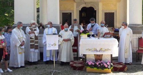 La “Sagre des Campanelis” continua, infatti, a tramandare il suo fascino e la sua forza attrattiva, tanto che stamattina sono stati tutti molto frequentati i riti conclusivi dell’Ottavario in occasione della festa della Natività della Madonna: ben quattro messe, come in una grande solennità, con il conclusivo pellegrinaggio da Vergnacco e la messa cantata dinanzi al Santuario delle Pianelle, tra due folte ali di fedeli richiamati dalla ricorrenza anche dai paesi del circondario, nonostante ovunque fosse giornata feriale. Festa patronale infatti soltanto a Nimis, sebbene i Santi protettori dell’antica Pieve siano Gervasio e Protasio, la cui memoria è fissata il 19 giugno. E c’era anche una piccola rappresentanza dall’Austria – guidata da Josef Niggas, il borgomastro di Lannach, la cittadina alle porte di Graz gemellata da oltre 30 anni nel ricordo dello scultore Rodolfo Zilli -, accolta dal sindaco Gloria Bressani e dagli assessori Serena Vizzutti e Aldo Attimis.