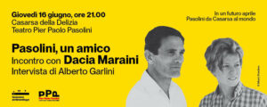 Dacia Maraini è stata una delle amiche piú vicine a Pier Paolo. I suoi ricordi si intrecciano in un dialogo intimo e sincero capace di prolungare e ravvivare un affetto profondo, nutrito di stima, esperienze artistiche e cinematografiche, idee e viaggi. Fruizione dell’evento nel rispetto dei protocolli sanitari vigenti alla data del 16 giugno.