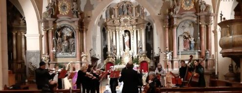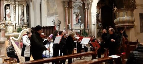 Tanti applausi per l’orchestra diretta da Carlo Grandi anche in questo appuntamento conclusivo che ha visto altre tappe a Muggia Vecchia, Manzano e Tarvisio. Un vero peccato che in quest’ultima località, imbiancata dalla neve, il pubblico non abbia avuto il coraggio di sfidare il maltempo. Anche perché il concerto che ha avuto quale appropriata cornice la storica Chiesa dei Santi Pietro e Paolo – retta da tre anni da don Alan Iacoponi, originario della lontana Bolivia – ha proposto pure qui il medesimo programma, nel quale è stato particolarmente suggestivo e adatto per la sua ambientazione il brano “Die Musikalische Schlittenfahrt” che Leopold Mozart, padre del Genio di Salisburgo, scrisse immaginando di portare con la sua slitta alcuni amici a una festa da ballo. In quel caso erano ovviamente le nevi austriache a essere percorse dai cavalli incitati dalla frusta e annunciati dal tintinnio dei sonagli, ma la traversata poteva benissimo essere immaginata anche su quelle della Valcanale.