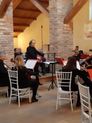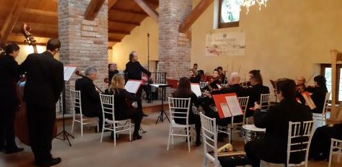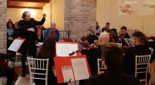 SAGRADO – E come poteva concludersi il concerto, vista ormai l’imminenza delle feste, se non con un sempre suggestivo “White Christmas”, tradotto nel nostro Bianco Natale («un brano – ha detto, scherzando, il maestro Grandi – che ho composto stanotte»)? È stata proprio questa piacevolissima, e da tutti molto conosciuta, pagina scritta dall’americano Irving Berlin nell’ormai lontano 1942 a concludere, come applaudito bis, il matinéee che gli archi dell’Orchestra Thomas Schippers hanno proposto ieri nella barchessa di Castelvecchio, sul Carso sopra Sagrado, nel concerto che ha coronato il secondo modulo di “Nuove sinergie musicali e sportive – Ripartiamo da Castelnuovo”, un contenitore fatto di arte, storia, cultura e musica, che aveva preso il via nella stessa sala la scorsa settimana. Ma come brano non previsto dal programma è stata eseguita nuovamente anche la dolcissima “Ninna Nanna” che Laura Grandi, violino solista e compositrice, ha voluto dedicare alla figlioletta che stava per nascere.