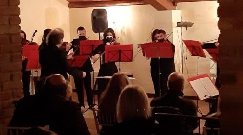 Di fronte a un folto pubblico, il concerto diretto dal maestro Carlo Grandi ha avuto quale cornice accogliente e suggestiva – che ha anche assicurato un’acustica perfetta – la restaurata Barchessa della storica Tenuta vitivinicola fondata nel 1750, famosissima per il suo Terrano perla inimitabile del Carso goriziano e triestino. E ha regalato non poche emozioni con una serie di brani di grandi autori che hanno attinto all’opera del Sommo Poeta – la “Divina Commedia” – facendo vibrare gli animi tra l’ansia dei cupi meandri dell’Inferno, la speranza di ascendere al Cielo da parte delle anime del Purgatorio e la gloria del Paradiso, dove a trionfare è l’Amore. Si sono applaudite così splendide partiture di Sibelius, Monteverdi, Schumann, Williams e Gluck, oltre che di Verdi, Schönberg, Mascagni e Bartòk, illustrate di volta in volta dallo stesso direttore e che hanno visto anche brillanti e delicati interventi solistici di Laura Grandi. Mentre gli altri componenti dell’Orchestra “Thomas Schippers” erano Snezana Acimovic, Marco Favento, Lucia Premerl, Giulia Pontarolo, Lorenzo Mian, Simonetta Fumiato e Daniel Longo (violini); Emma Krizsik e Giovanni Boscarato (viole); Massimo Favento e Katja Pangher (violoncelli); Laura Soranzio (contrabbasso); Laura Pandolfo (arpa). Alla fine diversi i bis sollecitati dai prolungati applausi, conclusi da un graditissimo brano che ha ricordato il gradiscano Michele Eulambio che fu anche allievo del citato Arnold Schönberg.