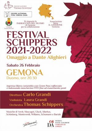 Sceso dunque il sipario sul concerto inaugurale, perfettamente riuscito nonostante la serata poco promettente a causa della pioggia e delle dispettose folate di vento, il “Festival Schippers” oggi, alle 20.30, farà tappa a Gemona, nella magnifica cornice del Duomo di Santa Maria Assunta, rinato dalle macerie del terremoto di 46 anni fa e nel quale è conservata una campana, detta del Paradiso, fusa nel 1423 a ridosso del primo centenario della morte di Dante Alighieri – mentre adesso se ne ricordano sette – e che rappresenta l’opera più antica di tutto il Patriarcato di Aquileia realizzata a ricordo del Sommo Poeta e della sua Commedia. Quindi domani, alle 18, l’appuntamento sarà a Villa Romano a Case di Manzano, concludendo così la prima tranche del ricco calendario della manifestazione musicale-culturale (ben nove serate!), che poi riprenderà il 4 marzo a Capriva, nell’Isontino. Tutti i concerti sono a ingresso libero, con l’osservanza delle norme anti-contagio (Green pass e mascherina Ffp2).