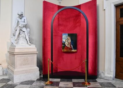In copertina e qui sopra due immagini della “Madonna con Bambino” di Cima da Conegliano esposta nel Palazzo della Regione Fvg a Trieste.