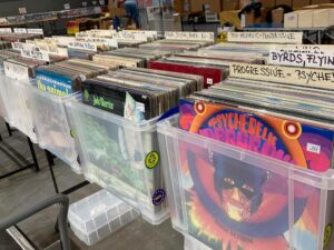 In copertina e qui sopra dischi in vinile grandi protagonisti oggi al Castello di Susans, a Majano.