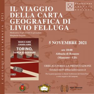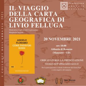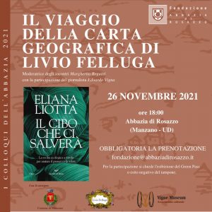 Ancora quattro interessanti incontri in quest’ultimo scorcio del 2021 a Rosazzo. Proseguono infatti, tra novembre e dicembre, “I colloqui dell’Abbazia. Il viaggio della carta geografica di Livio Felluga”, la rassegna culturale e letteraria curata da Margherita Reguitti, conduttrice degli incontri, e da Elda Felluga in collaborazione con la Fondazione Abbazia di Rosazzo.
