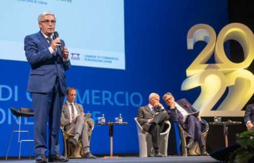 Anche il presidente della Camera di Commercio Giovanni Da Pozzo  – che aveva accanto il vicepresidente Michelangelo Agrusti, che è anche leader di  Confindustria Alto Adriatico – ha aperto il suo intervento esprimendo solidarietà al popolo ucraino. «Fare un intervento in questo periodo, con gli eventi di una guerra ogni giorno più preoccupanti, è davvero difficile. Ma ci proverò – ha detto – perché è nel nostro dna non mollare e provare a risolvere i problemi». Da Pozzo ha evidenziato le criticità emerse o consolidatesi nel 2022: la guerra e le sue conseguenze, i costi e la disponibilità delle materie prime, l’inflazione, i costi delle bollette energetiche, «senza dimenticare il Covid che, pur affievolito nella sua pericolosità, è entrato nella nostra quotidianità e dobbiamo sempre prestare attenzione». Il presidente camerale ha sottolineato però come il 2022 abbia anche segnato una ripresa economica e ha citato alcuni numeri emblematici. La crescita del Pil, secondo le stime Prometeia, del +2,7% per il Fvg per il 2022 e del +1,7% per il 2023, gli occupati nel primo semestre 2022 (rispetto allo stesso periodo del 2021 +5,2% e al 2019 +4,3%), con un tasso di occupazione del 70,4% (valore superato solo dal Trentino Alto Adige con 72,1%). L’export, poi, che nel 2021 ha segnato in Fvg +26,8% sul 2020 (l’incremento più alto di tutto il Nordest) e +16,7% rispetto al 2019. Quello provvisorio del primo semestre 2022 al +30,8% rispetto al 30 giugno.