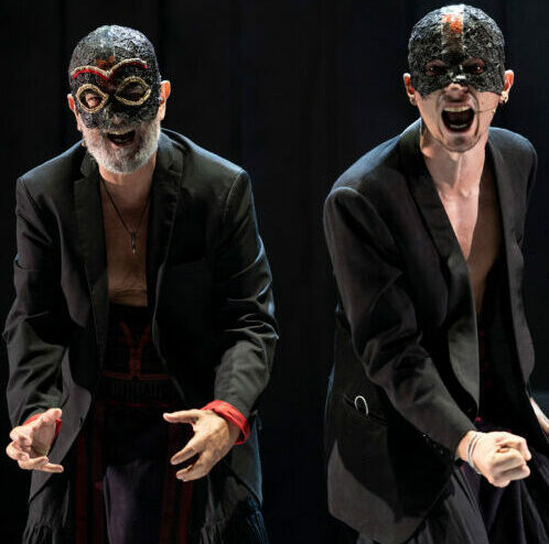 Bruni e Frongia rileggono la tragedia di Sofocle come una fiaba nera, onirica e perturbante, in cui il re smaschera sé stesso e si scopre mostro, segnando il suo atroce destino e quello della città che lo aveva proclamato sovrano. Sofocle rimane sottotraccia, continuamente innestato con altri autori, ognuno dei quali porta diverse sfaccettature alla vicenda. Come Pavese e il suo “Dialoghi con Leukò”, oppure Hoffmansthal che, in “Edipo e la Sfinge”, ci conduce nel mondo inconscio e freudiano della Vienna della sua epoca. A Cocteau si deve invece un ritratto di Giocasta, che richiama le dark ladies del cinema francese e americano anni ’40, mentre a Dryden e Lee un commovente addio tra Edipo e Giocasta, ricordandoci che la loro storia è anche d’amore, non solo di colpa e destino. Ma ci sono anche frammenti di Seneca, de “L’eletto” di Thomas Mann e di “Alla greca” di Berkoff, in cui la Sfinge è una femminista punk, tra slang e linguaggio alto, quasi shakespeariano. «Ci ha colpito – dicono Bruni e Frongia – il perdurare del racconto del mito attraverso i secoli, da Sofocle a Kae Tempest: una storia che ha continuato a creare senso in relazione alle varie epoche in cui veniva ripercorsa. Abbiamo voluto fare un viaggio attraverso tutte queste versioni».