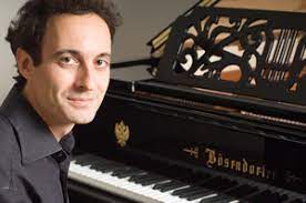 In copertina e qui sopra due immagini del pianista Gianluca Luisi atteso domani a Villa di Toppo Florio a Buttrio.
