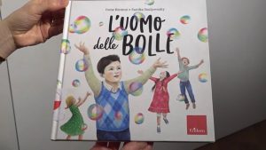 Per i visitatori più piccoli della mostra ci sono anche cinque pannelli didattici che spiegano come nasce un libro illustrato, in particolare come è nato “L’uomo delle bolle”. Dalla ideazione dei personaggi allo storyboard, gli schizzi, la scelta del palette colore: l’illustratrice spiega in dettaglio il suo metodo di lavoro. Sarolta Szulyovszky ama progettare con cura ogni dettaglio, dal tratto sino ai colori: quelli del cielo e dell’acqua sono i suoi preferiti. L’artista ha studiato Arte applicata all’Università “Nyugat-Magyarországi” di Sopron. Dopo alcune esperienze in studi grafici si è avvicinata al mondo dell’illustrazione frequentando un corso a Sàrmede, nel 2005. Nello stesso anno viene pubblicato il suo primo libro. Lavora con tecniche tradizionali (acrilico, collage, matita), con tecniche digitali e miste. Ha esposto nel 2011 e nel 2013 alla Biennale d’Illustrazione di Bratislava, nel 2008 al Salone del libro di Torino, dal 2007 al 2012 alla mostra Internazionale di Illustrazione “Le immagini della fantasia di Sàrmede” e in molte altre mostre collettive e personali in Italia e all’estero. Dal 2010 insegna grafica e illustrazione presso enti di formazione professionale nel Friuli Venezia Giulia.