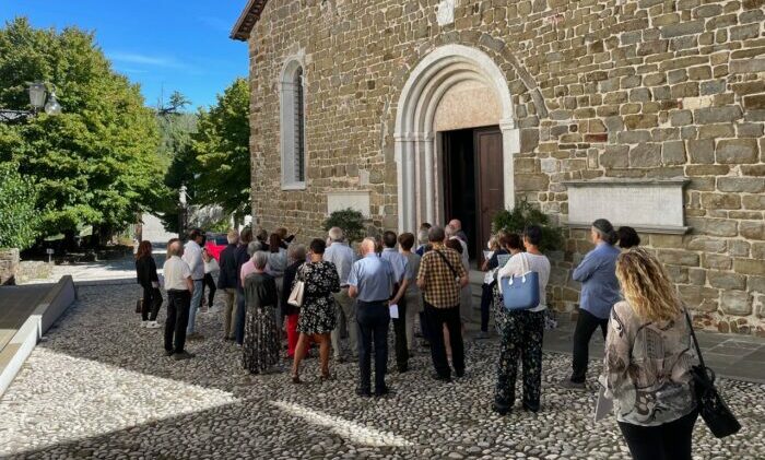 A conclusione della conferenza di presentazione di “Felix Coeli Porta”, viaggio affascinante e inedito attraverso 14 chiese del nostro Friuli, molte sconosciute, ma tutte figlie predilette di questa speranza, è seguita la visita guidata alla millenaria Abbazia di Rosazzo, pietra miliare sul nostro territorio, simbolo di un mondo che ha saputo coniugare capacità produttiva con fede e bellezza. Un anticipo del percorso, insieme storico-artistico, culturale-sociale e di fede della manifestazione di domenica 18 settembre.