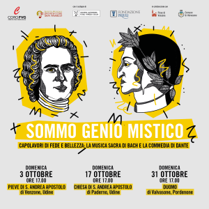 S’intitola “Sommo Genio Mistico” il nuovo progetto che il Coro del Friuli Venezia Giulia realizza insieme all’Orchestra San Marco di Pordenone con un programma di tre date: 3, 17 e 31 ottobre, a Venzone, Paderno e Valvasone, per un’iniziativa musicale e poetica che porta il sottotitolo: “Capolavori di fede e bellezza: la musica sacra di Bach e la commedia di Dante” (info e prenotazioni: www.corofvg.it; info@corofvg.it). Tre anche gli interpreti delle letture: due attori, Monica Mosolo e Federico Scridel per l’Inferno e il Purgatorio, ed un sacerdote, don Alessio Geretti, per il Paradiso. Tra gli interpreti musicali, oltre al Coro del Friuli Venezia Giulia che ha ideato il progetto, spiccano i nomi di importanti solisti, anche di madrelingua, giovani direttori e l’Orchestra San Marco di Pordenone su strumenti antichi. Il primo degli appuntamenti è annunciato per domani 3 ottobre, alle ore 17, nella Pieve di Sant’Andrea Apostolo a Venzone, con le letture di Monica Mosolo e la cantata bachiana “Ärgre dich, o Seele, nicht” BWV 186, con il Coro del Fvg e l’Orchestra San Marco diretti da Gaetan Nasato Tagnè. “Sommo Genio Mistico” è un progetto del Coro del Friuli Venezia Giulia, realizzato con il sostegno del Ministero della Cultura, della Regione Friuli Venezia Giulia e della Fondazione Friuli, in collaborazione con le parrocchie di Venzone, Paderno di Udine e il Comune di Valvasone.