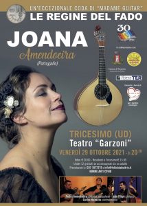 Per celebrare il trentesimo anno di attività, rimandato dal 2020 al 2021 per gli ovvi motivi legati all’emergenza sanitaria, il Folk Club Buttrio vuole aggiungere alla musica di qualità, che ha sempre perseguito, anche momenti di solidarietà, in cui si inserisce il concerto che si terrà al Teatro “Garzoni” di Tricesimo il prossimo venerdì 29 ottobre, alle 20.30, con una grande cantante portoghese di Fado, Joana Amendoeira, accompagnata da tre artisti conterranei su strumenti a corda, fra cui la famosa chitarra portoghese. Fra le motivazioni della serata, in coda a “Madame Guitar”, c’è quella di sostenere un’associazione di volontariato come “La Casa di Joy”, che si occupa di bambini malati oncologici. Per fare questo, una quota dell’incasso di biglietteria sarà devoluto a tale sodalizio, con il quale Folk club ha già collaborato in altri contesti locali.