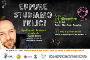 Appuntamento molto atteso a Casarsa della Delizia quello di domani 11 dicembre, alle 21, al Teatro comunale Pier Paolo Pasolini con il professore “star” del web e scrittore di successo pordenonese, Enrico Galiano, il quale salirà sul palco per mettere in scena il suo ultimo lavoro teatrale “Eppure studiamo felici”. Lo spettacolo è inserito nel calendario degli eventi “Dovere di ricordare, diritto di fare festa” che dal 18 novembre scorso celebrano l’anniversario della Dichiarazione dell’Infanzia e Adolescenza. Uno spettacolo teatrale-musicale in cui Galiano, tra ironia ed emozioni, affascinerà il pubblico mostrando come la scuola possa essere ancora luogo di bellezza, il tutto accompagnato dalle musiche di Pablo Perissinotto.