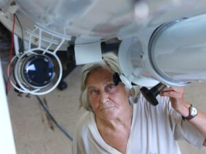 In copertina, una curiosa immagine di Margherita Hack; qui sopra, l’astrofisica al telescopio di Trieste.