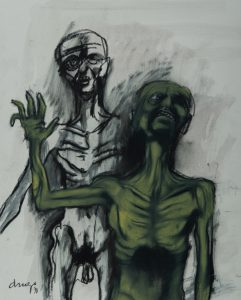 «La parabola che Franco Dugo racconta, in questa mostra che festeggia i suoi ottant’anni con molte opere inedite dall’inizio a oggi, è, in fondo, la parabola di tutti – sottolinea il curatore, Giancarlo Pauletto – L’esposizione è stata intitolata “Franco Dugo. Interrogare la vita. Dipinti, disegni, carte d’Atelier”, un titolo che ci pare semplice e impegnativo nello stesso tempo, perché ci mette di fronte ad un’essenzialità che non permette troppi giri di parole, così come è la sua arte che si confronta con il puro “essere” dei volti e delle persone, nelle tantissime figure: basti ricordare, ad esempio, la sequenza del Ratto della Gioconda, o la serie dei pugili e dei ritratti. Chi vedrà questa mostra troverà, naturalmente, il Dugo di sempre, con la sua capacità di immedesimazione nelle psicologie umane, integrata da tanti inediti che, pur riferiti alle tematiche note, provengono dal grande cumulo delle carte d’atelier, e quindi idee e approssimazioni, ma anche, molto spesso, disegni perfettamente compiuti che sono poi serviti per la realizzazione delle grandi tele, delle grandi incisioni o dei grandi pastelli. È stato un lavoro faticoso ed entusiasmante, quello di sceverare tra tante possibilità, fino a selezionare disegni, acquarelli e altre tecniche anche tra i quaderni e i notes dell’artista, quelli dove i primi stimoli hanno una loro immediata realizzazione. Per ogni tema della mostra viene esposta un’opera ben nota, un “pesce guida” che dà un’idea precisa degli sviluppi, nel tempo di tante “prove”. È alla fine degli ’80 che irrompe, nel lavoro di Dugo, il tema della natura. Del 1989 è infatti l’acquaforte Grande albero la prima prova veramente impegnativa dedicata ad un soggetto esclusivamente naturalistico: si potrebbe dire l’ingresso ufficiale del tema nella riflessione per immagini del pittore. Questo perché il lungo lavoro sulla figura non è mai stato per Dugo semplice rappresentazione, per quanto squisita, ma riflessione sul senso della vita. Nel lavoro di Dugo verso gli anni Novanta il tema “figura umana” diventa così intercambiabile col tema “figura naturale”, e il concentrarsi sull’una o sull’altra dipenderà ormai solo da motivi d’esistenza, non da scelte mentali».