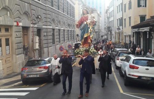TRIESTE – Il 7 ottobre 1571 nel mare di Lepanto le flotte dell’Impero ottomano furono sconfitte da quelle della Lega Santa. E per celebrare la grande vittoria cristiana San Pio V istituì, quale ringraziamento alla Vergine Maria, la festa della Madonna del Rosario, la cui tradizione è ancora molto viva e sentita in tante località del Friuli Venezia Giulia. Come pure a Trieste dove la Chiesa mariana di Città Vecchia la celebra con particolare solennità. I riti si sono conclusi proprio giovedì scorso, 7 ottobre, con la messa cantata in latino a ricordo della famosa battaglia navale, ma avevano avuto il loro apice, come è antica consuetudine, nella prima domenica del mese, in cui si venera ovunque proprio la Madonna del Rosario, cui è dedicata appunto anche la bella Chiesa guidata da don Stefano Canonico, che sorge a due passi dal Teatro Romano e da piazza Unità d’Italia.