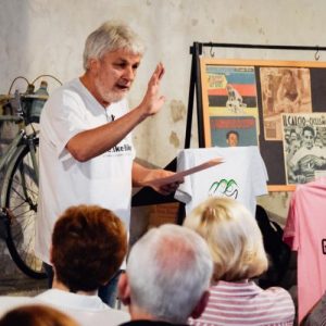 (g.l.) Dino Persello ha davvero il ciclismo nel sangue. E non perde occasione per parlarne anche nei suoi applauditi monologhi. Tant’è che ora, entrando nel vivo del “Giro d’Italia” con il suo arrivo in Friuli Venezia Giulia, ha messo in programma tre serate divertenti e di sicuro interesse. Come quelle che aveva proposto già nell’ottobre scorso, al passaggio (posticipato causa Coronavirus) della “carovana rosa” per le nostre strade, e che avevano toccato diversi paesi, con un evento finale a Udine. In questa nuova edizione della grande corsa gli appuntamenti, intitolati come lo scorso autunno “Ciclismo è poesia”, sono fissati nel secondo scorcio della settimana a Gradisca d’Isonzo e a Mariano del Friuli, ma anche a Tramonti di Sopra, tra le montagne del Pordenonese. Ma andiamo con ordine.