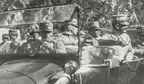 In copertina e qui sopra il Re d’Italia durante il suo soggiorno in Friuli nel corso della Grande Guerra.