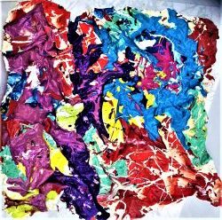 «L’effetto visivo di astrazione – prosegue la responsabile del frequentato spazio espositivo di Trieste, città oggi in grande fermento per la Barcolana – suggerisce aspetti ideativi a indicare la sua impronta personale trasmutata ad ogni nuova esperienza pittorica. Le tracce cromatiche possono venire a contatto con le resine fino a debordare i confini del dipinto e nell’immagine che si offre allo sguardo in una doppia valenza, come sostanza pittorica e come forma mentale in continua germinazione per vivere anche fuori della dimensione del quadro. Comprimendo la tela l’artista crea la terza dimensione, passaggio indispensabile per la trasformazione dello statico in dinamico. L’artista dopo averla compressa srotola la tela e su di essa esprime il colore».