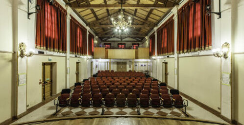 In copertina l’esterno del Teatro Bon di Colugna e qui sopra la bella sala.