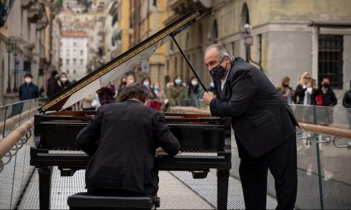 Ideale “ambasciatore” di questo messaggio e appello alle istituzioni è il “pianista fuori posto”, nome d’arte del padovano Paolo Zanarella che ormai da più di 10 anni raggiunge con il suo pianoforte a coda strade e piazze, ma anche alcuni luoghi curiosi e imprevedibili delle città, che diventano il suo ideale palcoscenico da dove regala ai passanti la gioia e la magia di un concerto inaspettato. Un pianista talmente “fuori posto” da esibirsi anche in volo sopra Venezia o sospeso su un lago fino a raggiungere i corridoi degli ospedali. Ripartire è l’unica speranza, è il motto che accompagna l’incursione del pianista fuori posto a Pordenone e lo fa nei pressi di un negozio, Mazzini 47, che a breve inaugurerà uno spazio culturale al servizio della città.