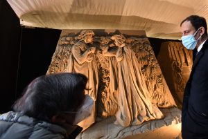 «Questo presepe – ha detto il governatore al termine della vista – ha già ricevuto le visite di moltissimi turisti non solo della nostra regione, ma anche dei territori contermini. Quella allestita a Lignano è una vera e propria opera d’arte realizzata con materiale del nostro territorio, la sabbia, che è il cuore di questa località. Le magnifiche sculture qui esposte – ha concluso Fedriga – mettono assieme un capolavoro della letteratura mondiale con un altro simbolo universale che è quello della Natività, offrendo così un messaggio di bellezza e di speranza all’intera collettività».