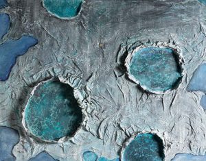 Da sempre impegnata nell’esprimere sensibilità verso i problemi sociali, Loredana Marangone presenta alcune opere realizzate nel periodo dell’emergenza sanitaria, mettendole a confronto con altre del biennio precedente. Una mostra che nelle opere pre-pandemiche «fa affiorare timori, separazioni ed umana partecipazione, soprattutto nei confronti di chi non ha infine affrontato questo imprevedibile futuro». Nella produzione successiva, connessa ai mesi di lockdown, l’artista invece concretizza invece «le angosce, le paure e le tensioni che tutti abbiamo provato. Lo sguardo, però, non si arresta al presente: preoccupazioni e speranze si addensano attorno agli interrogativi che, dal futuro, premono oltre le urgenze della stretta attualità: pozze e fratture evocano il problema climatico e in generale un rapporto da riequilibrare con tutti i viventi».
