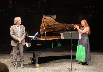 In copertina, il mezzosoprano Alessia Nadin e Federico Lovato, al pianoforte Fazioli, durante l’applaudito concerto in Teatro.