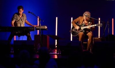 Ma dicevamo del concerto al sorgere del sole. Terza iniziativa del programma di “Music & Taste for Sportland”, era annunciata per domenica scorsa, 1 agosto, creando un notevole clima di attesa, non solo perché si trattava per Nimis della prima proposta musicale a quell’ora insolita, ma anche per il luogo individuato: un bel prato tra i vigneti in riva al Cornappo, a due passi dalla famosa Scluse. Purtroppo, come si temeva, la location non ha potuto ospitare l’evento a causa del tempo piovoso, tanto che si è dovuto ripiegare, come peraltro annunciato qualora ci fosse stata la necessità, al coperto, nell’accogliente Teatro parrocchiale. Ma anche qui il concerto di Federico Poggipollini non ha deluso il folto pubblico che aveva affrontato la levataccia.