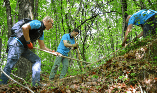 In copertina, la pulizia dei sentieri per renderli adatti e sicuri per le mountain bike.