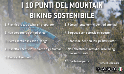 La diffusione di queste regole sull’uso consapevole del mezzo (regole del sentiero) punta a ridurre l’impatto, benché minimo, della bicicletta sui sentieri e si unisce all’insegnamento su come costruire e manutenere sentieri sostenibili – ossia che necessitino di poca cura nel tempo – anche attraverso giornate dedicate a queste attività su tutto il territorio europeo chiamate Take Care of Your Trails.