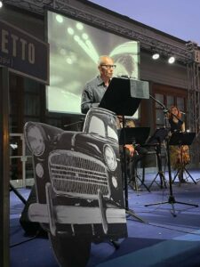 È un diario di viaggio di un Pasolini che si abbandona a momenti di vera e propria gioia quello che tra il giugno e l’agosto del 1959, al volante di una Fiat 1100, percorre la «lunga strada di sabbia», il periplo completo della nostra penisola. Un viaggio che parte da Ventimiglia e lo porta fino al Comune siciliano più meridionale, per risalire infine la costa orientale, arrivare a Trieste e concludere la sua avventura a Muggia affacciandosi sul confine. La scenografia raffigura il muso di una Fiat 1100 d’epoca intorno alla quale gli attori e i musicisti agiscono evocando le atmosfere delle tappe del viaggio attraverso i passaggi più suggestivi dei suoi appunti. La colonna sonora fa riferimento al repertorio musicale degli anni ‘50/’60, in particolare ad alcune canzoni del cuore di Pasolini e ai brani di cui il poeta è autore dei testi.