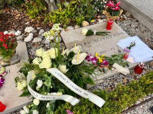 Casarsa della Delizia ha reso omaggio a Pier Paolo Pasolini. Ieri, in occasione del 47° anniversario dalla tragica morte del poeta, l’Amministrazione comunale ha infatti ricordato il grande intellettuale con una breve ma toccante cerimonia di commemorazione nel cimitero di del capoluogo, ove è sepolto accanto alla madre Susanna e a pochi passi dal fratello partigiano Guidalberto, dal padre Carlo Alberto e da altri familiari. La deposizione di una composizione floreale sulla tomba da parte del sindaco Claudio Colussi è stata accompagnata dalla declamazione della poesia di Pasolini in friulano casarsese “Ciant da li ciampanis” (Canto della campane – tratto dalla raccolta Poesie a Casarsa) da parte della presidente del Centro Studi Pier Paolo Pasolini, Flavia Leonarduzzi.