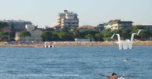 «Gradesi e ospiti sono cresciuti su un’Isola che offriva davvero tanto – dice il presidente del Consorzio Grado Turismo, Thomas Soyer -. Degli anni ‘60, ‘70 e ‘80, a molti restano tanti piacevoli ricordi: estati indimenticabili, l’atmosfera, l’aria vibrante di un’Isola vivace. Purtroppo, parecchi di questi pensieri, memorie e piccoli dettagli stanno sparendo irrimediabilmente negli ultimi anni, come è scomparso il trampolino. Ora, un bel progetto firmato dallo studio Architect and Friends dell’architetto Michael Atzenhofer, prevede di riportare a Grado uno sport tipico del mare: il nuoto. La nuova piattaforma per i tuffi rappresenta solo una parte dell’idea complessiva: come in una piscina, le corsie virtuali di nuoto iniziano alla fine del molo con dei trampolini bassi e si estendono in mare aperto fino al punto in cui si trovava il vecchio trampolino. Le linee delle “corsie” di nuoto modellano la struttura della nuova torre e formano le varie parti: la piattaforma, un trampolino alto, due bassi e un sundeck (prendisole). Le linee nette fanno sembrare il trampolino elegante e leggero, ma allo stesso tempo offrono la sicurezza necessaria per rappresentare un punto focale per i nuotatori in mare aperto. La struttura può essere progettata in modo flessibile, tale da adattarsi alle maree e può essere trasportata in porto d’inverno. Alla sera, appena gli ultimi bagnanti avranno lasciato la torre, la natura se la riprenderà. La forma elegante fa apparire le singole parti come uccelli che rimangono nell’acqua, in compagnia di quelli, numerosi, che già frequentano la laguna gradese circostante. Ci pare – conclude il presidente Soyer – una valida proposta capace di creare un nuovo simbolo per la cultura balneare di Grado, innovando le antiche atmosfere. Un’idea che si può condividere e commentare scrivendo a: info@consorziogradoturismo.org».
