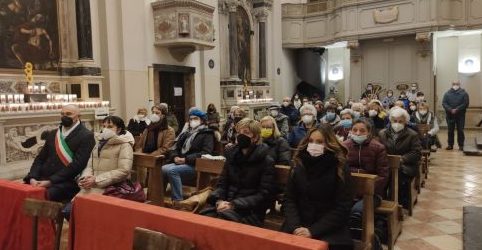 In copertina e all’interno la Chiesa di San Valentino durante la celebrazione della messa, presente l’assessore regionale Barbara Zilli.