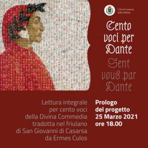 A settecento anni dalla nascita del Sommo Poeta e in occasione del “Dantedì”, giornata nazionale dedicata a Dante Alighieri, l’Assessorato alla Cultura del Comune di Casarsa della Delizia ha promosso “Cento voci per Dante/Sent vous par Dante”, una speciale maratona di lettura in tre atti della Divina Commedia, nell’originale versione di Ermes Culos, in assoluto la prima traduzione integrale in friulano del capolavoro dantesco.
