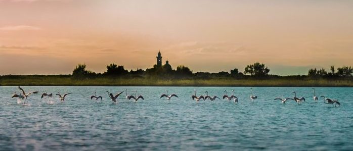Fenicotteri davanti a Barbana.