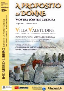 Arte e cultura protagoniste in tre rassegne friulane. “A proposito di donne” è intitolata la mostra aperta il 1° settembre nelle sale di Villa Valetudine, in via Codroipo, a Camino al Tagliamento, dove potrà essere visitata fino al 30 settembre. L’inaugurazione ufficiale è annunciata per oggi, sabato, alle 18: la presentazione sarà a cura del dottor Adriano Smets, presidente della Fondazione Villa Valetudine. La mostra potrà quindi essere visitata ogni giorno, anche il sabato e la domenica, previo appuntamento.