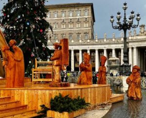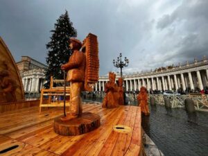 «Il Presepe di Sutrio ha un grande valore simbolico per il Friuli Venezia Giulia sia per la grande attenzione posta alla sostenibilità ambientale nella sua realizzazione sia per la scelta di ricavare la culla nella quale sarà posto Gesù Bambino dalle radici di un albero sradicato dalla furia tempesta Vaia, che si è abbattuta sulla nostra regione con particolare violenza. Quest’ultima scelta trasmette un messaggio fortissimo che incarna i valori delle nostre comunità, le quali hanno sempre dimostrato grande coraggio e resilienza nell’affrontare le tragedie, alcune particolarmente dure, e le sfide che hanno segnato la storia del Friuli Venezia Giulia e delle sue genti». Lo ha detto ieri pomeriggio il governatore del Friuli Venezia Giulia Massimiliano Fedriga – che in mattinata aveva incontrato il Papa – al termine della cerimonia di inaugurazione del grande Presepe di Sutrio che fino all’Epifania sarà esposto in piazza San Pietro nella Città del Vaticano.