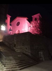 (g.l.) Arrivando a Cividale o imboccando la regionale per le Valli del Natisone da qualche sera si ha la gradita sorpresa di scorgere lassù Castelmonte, con il suo amatissimo Santuario, “vestito” di una singolare luce rosa. E sicuramente molti si saranno anche chiesti perché. È presto detto: dal 26 gennaio, a 100 giorni dalla partenza, tutte le tappe del Giro d’Italia 2022 sono illuminate (fino al prossimo 27 maggio) con il tipico colore della Grande corsa che quest’anno, come è noto, in Friuli Venezia Giulia vivrà il bellissimo percorso che va da Marano Lagunare alla località mariana in Comune di Prepotto. Un avvenimento storico, sicuramente, per la terra dello Schioppettino che si sta preparando al meglio per viverlo.