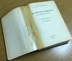 Entrando nel dettaglio, il dipinto di Toni Zanussi è Senza Titolo, ma probabilmente – annota il primo cittadino – è dedicato al terremoto che sconvolse il Friuli nel 1976, essendo stato realizzato tre anni dopo la tragedia che fece un migliaio di vittime. Il quadro attualmente è esposto proprio nell’ufficio del sindaco. Farà bella mostra di sè, invece, nella Biblioteca comunale (ex scuole elementari di via Matteotti) la copia de “Il nuovo Pirona” in una edizione che risale al lontano 1932, quindi esattamente a 90 anni fa. Si tratta del più importante e conosciuto vocabolario friulano, redatto dall’abate, scrittore e linguista Jacopo Pirona (Dignano, 22 novembre 1789 – Udine, 4 gennaio 1870), autore appunto del primo dizionario con grafia unificata in “marilenghe”.